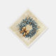 Merry Christmas Happy New Year Blue Gold Wreath Napkin