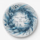 Merry Christmas Happy New Year Blue Wreath Paper Plate