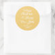 A modern Merry Christmas Happy New Year sticker or envelope seal with white elegant script calligraphy and simple stylish typography on a pumpkin yellow background. Exclusively designed for you by Happy Dolphin Studio!