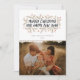 Stylish, elegant and personalised; featuring your photo with handwritten styled type accented by hand drawn pine leaves and berries. The back features a festive snow pattern.