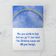 Merry Christmas & Happy New Year Flying Reindeer Holiday Card features a happy, joyful flying reindeer pictured against a deep blue sky and two puffy clouds. Above it proclaims, "Merry Christmas! Inside top shows a blue watercolor sky with a rainbow spread across it. Below the verse says, "May your Spirits high and may joy fill your heart this Christmas season and all year through." You can customise the images and personalise the text in this Christmas Holiday card.