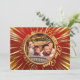 A modern photo Christmas card design with your family photo highlighted inside a golden circle with emanating rays of gold. This design carries over to the back for your custom Christmas greeting, your names and space for your handwritten personal note.