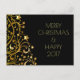 Merry Christmas Happy New Year Gold Stars Black Holiday Postcard