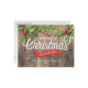 Merry Christmas and Happy New Year Holiday Greeting Postcard Templates - Christmas Poinsettia Flower, Pine Tree Branch, Mistletoe Red Berries and Reindeer on Rustic Wood Background.