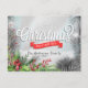 Merry Christmas and Happy New Year Holiday Greeting Postcard Templates - Christmas Poinsettia Flower, Pine Tree Branch and Mistletoe Red Berries on Snow Land.