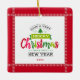 Merry Christmas Happy New Year Lettering Ceramic Ornament