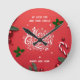 The clock did not take as long to arrive as I thought it might and was extremely well packaged. I didn't do the measurements so I didn't realize it is a little smaller than the average clock but that does not matter (just make sure you check if that's important to you).It is really nifty! It seems very solid and well made not flimsy at all. It has been going well and has kept good time in its few weeks on my wall. Nice product. Gets noticed too! Nicer in real life than the picture but true to the picture