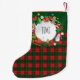 Monogram Small Christmas Stocking (Personalised) - Merry Christmas and Happy New Year! XMAS Small Christmas Stocking decorated with Christmas magic symbols, Winter Holiday gifts elements pattern, snowman, christmas tree, christmas ball, reindeer, snowflakes, christmas stars, and more festive characters on Christmas chequered square ornaments, Scotland pattern (green & red colour). Original trendy graphic design. Home, Home Décor, Christmas Décor, Stockings Gifts Presents Winter Holiday Decoration. Monogram Small Christmas Stocking Design with text template. Personalise them by adding name. Two sides graphic decoration.