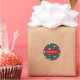 Seal your Christmas wrapping or envelopes in style with these stickers; featuring a busy repeat of Father Christmas doing a star jump. Use "Personalise this template" to change the "Merry Christmas!" text if desired. Drawn in a retro, pixel art style, a traditional Santa Claus decked in red suit and hat with white fur trim, black boots and belt with a gold buckle, brown leather mittens and a full shaggy beard. Matching wrapping paper, tissue paper and gift tags are available in the PixelPatterns store.