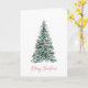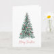 A beautiful Christmas Card featuring a flocked watercolor christmas tree.