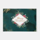 Beautiful Christmas doormat depicts an elegant abstract green background with gold splashes. It features a red flower and greenery design surrounding a diamond frame with the greeting "Merry Christmas" in gold script.