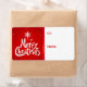 Custom gift tags for your Holiday presents featuring whimsical Merry Christmas typography and snowflakes forming a Christmas tree on red and white.