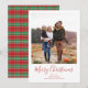 Simple green and red tartan country plaid with white stitching accents. Christmas holiday red green plaid, classic family 1 photo picture, tartan flannel winter country, farmhouse cute whimsical simple pattern, simple minimalist minimal typography, an elegant calligraphy script font, merry Christmas greeting card, Christmas holiday photo greeting card, rustic country farmhouse farm, modern hand-lettering script font