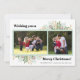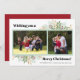 This modern Christmas flat greeting card offers two photo frames with the bold text "Wishing you a Merry Christmas." This holiday design is accented with a graphic of winter Christmas greenery.