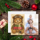 Celebrate the Christmas holiday with this fun, customisable postcard. The front of the card is accented with a vintage teddy bear dressed as a pilot with a cute toy biplane aeroplane and a customisable option to add your favourite family photo to the right, creating a perfect balance of festive. Flip over the card to enter personalised name, address, and special holiday greeting, or use ours!