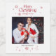 This design features a "Merry Christmas and Happy New Year" written in popular festive red typography surrounded by snowflakes. Personalise by adding your photo or image and editing the text in the text box to add your family name. PHOTO TIP: use a horizontal photo.