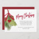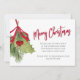 This design features a Merry Christmas holiday holly greenery invitation with botanical winter leaves foliage leaf, QR code website online text, Facebook social media event page, winter holly berry berries mistletoe, watercolor red and green foliage, a stylish elegant calligraphy script font, festive party celebrate celebration, a classic traditional holiday illustration, a Christmas holiday simple party invite