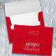 This design features merry Christmas script holiday red, cute festive typography simple, modern elegant simple trendy,5x7 a7 cute whimsical, with return address back flap, simple minimalist minimal fun, calligraphy script red and white, Christmas holiday mailing supplies, coordinating matching envelope, holiday Christmas greeting envelope