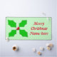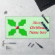 This awesome desk mat features four holly leaves complete with a red berry to join them together. The berry appears to glisten in the light and the leaves have a 3D quality to them. There is custom text so you can include a name and message. The default message reads Merry Christmas.