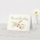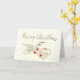 Musical notes are drawn to resemble holly berries and leaves. Vintage gold text reads, "Merry Christmas." Blank interior. Great for music lovers.