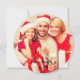 Fun and festive, this circular photo card features your photo on the front, customised with your name and year. On the back is a frame of holly with 'Merry Christmas and Happy New Year' written in black.