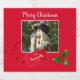 A photo frame in Christmas red with a white border titled “Merry Christmas” - adorned with a very festive green and berry red holly sprig and a red ribbon gift tag bearing your name or a message of love and festive greetings.