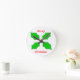This awesome clock features four holly leaves complete with a red berry to join them together. The berry appears to glisten in the light and the leaves have a 3D quality to them. The red text around the holly reads Merry Christmas.