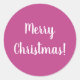 Merry Christmas Hot Pink Typography Classic Round Sticker