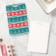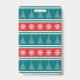 Merry Christmas illustration with Christmas tree and snowflakes decoration on red, white, blue and turquoise striped background