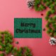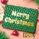 Merry Christmas Jesus cross retro typography green Foil Holiday Card