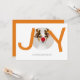 A colourful Merry Christmas Joy Holiday Photo card from Ricaso - designed with a bold orange chunky typography text to the front and a photo placement template - this simple modern bright orange design is sure to be a hit with family and friends .. easy to add your own text and photo - Send your greetings in style this holiday with a personalised card - also available in different colours in store