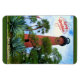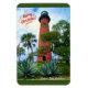 This beautiful holiday flexible magnet features a photo image of the landmark 1860 Jupiter Lighthouse and Museum in Jupiter, Florida. The stunning tower is beautifully framed by manicured greenery, tropical palm trees, and the American flag. The waterfront History Museum is located in the restored WWII Naval housing quarters building. The Jupiter Lighthouse is located between Cape Canaveral Lighthouse and Hillsboro Inlet Lighthouse. The light can be seen 24 nautical miles at sea. The Jupiter Inlet Lighthouse is on the National Register of Historic Places in Florida. The text on the magnet reads "Merry Christmas" and "Jupiter Inlet Lighthouse." Available in two sizes. Photography & design by Glenda Motsavage, a Florida-based travel writer and author. Please browse our extensive collection of Florida-themed Christmas and holiday greeting cards, home decor, gift wrap, edibles, apparel, and more!