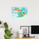 Merry Christmas Dragons Poster. Cute little dragon friends wearing red Santa hats: ice blue, green and yellow orange dragon in a snowy winter landscape with snow flakes falling and customisable text message "Merry Christmas" cartoon poster. This great dragon cartoon Christmas poster print is fully customisable, add your text and images! A great Christmas cartoon poster for the little big dragon fans and the big fantasy believer!