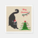 Christmas holiday napkins with black cat, holiday tree, Poinsettia flower . Add custom text and background colour.