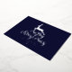 A gorgeous silver foil design of a leaping deer over Merry Christmas text on the front of this silver and navy card.