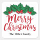 Merry Christmas Leaves And Berries Personalised Square Sticker