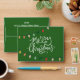 Modern, festive and cheerful Merry Christmas script calligraphy decorated with bright and colourful strings of Christmas lights on green background. Upload your company logo and personalise with year and customisable and a Happy New Year message to make it unique.