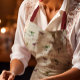 Bring out the figgy pudding in your holiday apron with a neutral colour, pattern of vintage glass bird clip ornaments, and lyrics to "We Wish You a Merry Christmas" (public domain). It's a timeless design for a timeless tradition; baking for friends and family!