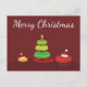 Postcard showing five, happy macarons celebrating Christmas. No tree? No problem. They've figured out a solution with a star and some Christmas lights. Above the group of cartoon macarons is the message "Merry Christmas". The phrase can be customised to words of your choice.