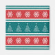 Merry Christmas illustration with Christmas tree and snowflakes decoration on red, white, blue and turquoise striped background