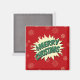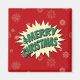 Merry Christmas comic style illustration with Christmas tree and snowflakes decoration on red background