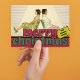 Spread holiday cheer in vintage style with these Christmas cards that are ready to be customise with your own long horizontal or landscape orientated photo and your own from message. The message "Merry Christmas" is spelled out in a vintage style font in festive red and green. The reverse side has a collage of coordinating holiday greetings in a fun 1970s colour palette.
