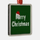 A funny Santa hat and the words Merry Christmas on a green background. You may click personalise and edit the word Christmas to your liking.
