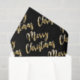 Merry Christmas in a modern elegant script in a metallic gold look on a stylish background in black.