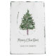 This minimalist holiday Christmas gift bag says "Merry Christmas". A simple, watercolor pine Christmas tree adds a stylish and festive touch, while the sides of the bag are decorating with a coordinating pine tree pattern.