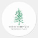 Merry Christmas Minimalist Green Modern Tree Classic Round Sticker
