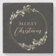 Merry Christmas Minimalist Wreath Black Stone Coaster