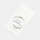 Paper guest towels featuring a minimalist watercolor wreath with red floral and green foliage accents. This elegant wreath frames the greeting "Merry Christmas". Easy to personalise with your family name.