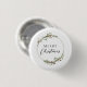 Button featuring a minimalist watercolor wreath with red floral and green foliage accents. This elegant wreath frames the greeting "Merry Christmas". Makes a great gift.