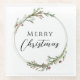 Merry Christmas Minimalist Wreath White Glass Coaster